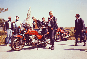 June 14th 2025: I did had organized a oldtimer bus and had invite the forefather and the men from the first hours of the club to celebrate together with us. In 1985 men with leather fetish and motorcycle rider around Peter Holub and his boyfriend Wolfgang started to a first motorcycle tour. I was there, and after a while I started to organize meetings, and still now I'm involved into the leather & motorbike community. Thanks a lot to all my friends for help and support! Happy Pride! |
