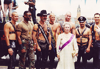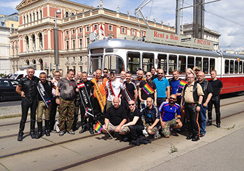 Above: My man Frank, Mr. Leather Austria 1997, at the Mr. Leather Europe contest in Manchester. Above right: The LMC Vienna biker group at the Regenbogenparade 2007. Tramway tour at Vienna Fetish Spring 2014. The poster for Wien in Schwarz (Vienna in Black) 2005. |
