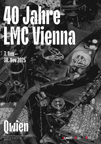 2025 November 7 till 30: It has began, August 1985 . . . as enthuiastic men in leather did met around Peter Holub and his partner Wolfgang, for motorbike rides. In lots of documents, objects we show the lively club life from begin till now. A beautiful piece of fetish culture in this city. We are proud of them! Take a look at Qwien, 1050 Vienna, Ramperstorffergasse 39 |