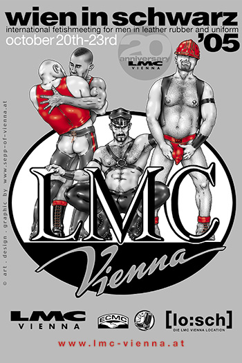 20 Years LMC Vienna! As one of the founding fathers of the Vienna Leather & Motorbike community, I designed the oval LMC Vienna-logo in 1987 featuring a guy in harness sitting down. For the 20th anniversary in 2005 I have created an expanded variety. See gallery 1 and gallery 3. www.lmc-vienna.at |